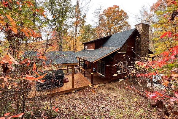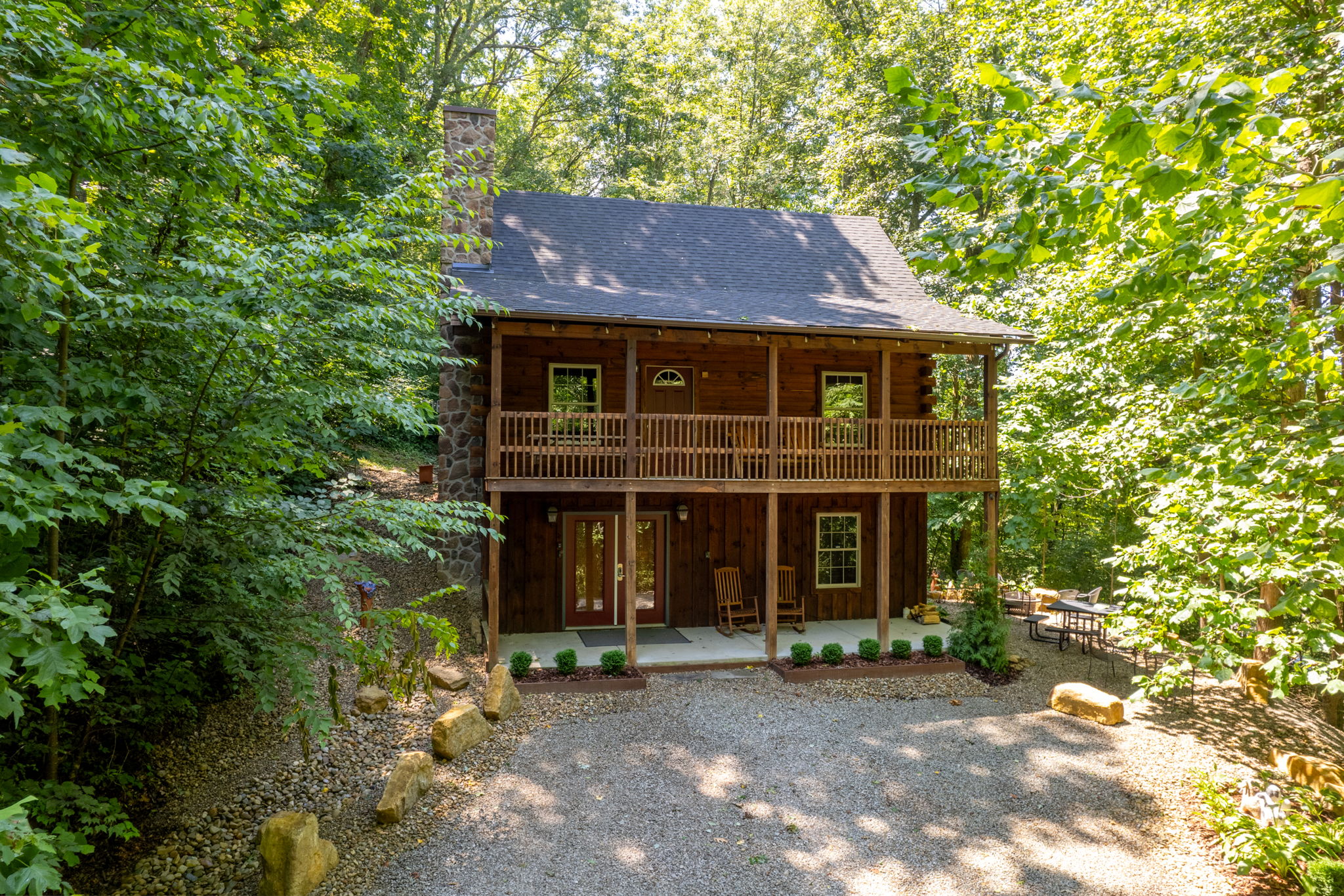 Three covered decks surround this charming cabin deep in Hocking Hills and close to Old Man’s Cave. A photo gallery of local artists and high-end comfortable furniture make this cabin a favorite in our collection. Three Bedrooms and 3 Bathrooms – one on each floor make for privacy for guests. The foosball and hot tub as well as the yard games and fire pit make for family fun year-round.