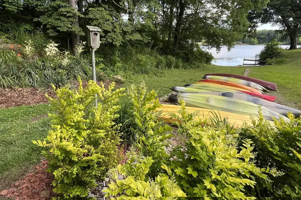 One of the four exquisite suites at Chateau Lake Logan Lodge and nestled in a charming residential neighborhood by the lake, this retreat offers privacy without feeling isolated. Spread across 7 picturesque acres, our property features not only the serene beauty of the lake with thousands of feet of waterfront. Enjoy ample green spaces and the sports equipment to round out your days. Access is provided via a tranquil privately owned lane, ensuring a peaceful escape. Come and immerse yourself in these delightful surroundings, complete with all the comforts and amenities you desire for an unforgettable getaway. Whether exploring the stunning surroundings or indulging in each other’s company, your stay at Château Lake Logan guarantees a romantic retreat filled with joy and connection